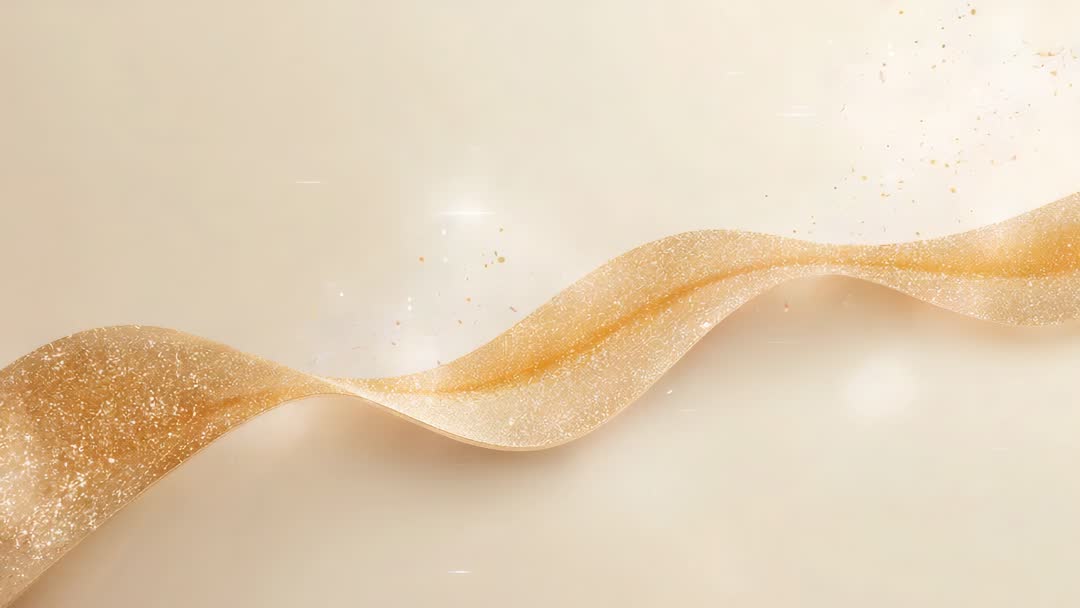 AI Generated Video. Featuring elegant golden ribbon wave drifting across soft beige backdrop, sparkling with fine glitter and floating particles. Soft glow and subtle bokeh highlights creating cinematic, high-end look with warm gold and cream color palette. Plenty of negative space for overlay text and logo, motion remaining loop-friendly for seamless video backgrounds. Use for luxury brand intro, wedding invitation background, product promo opener, holiday greeting animation, social media ad, website hero loop, broadcast tease, corporate presentation transition.
