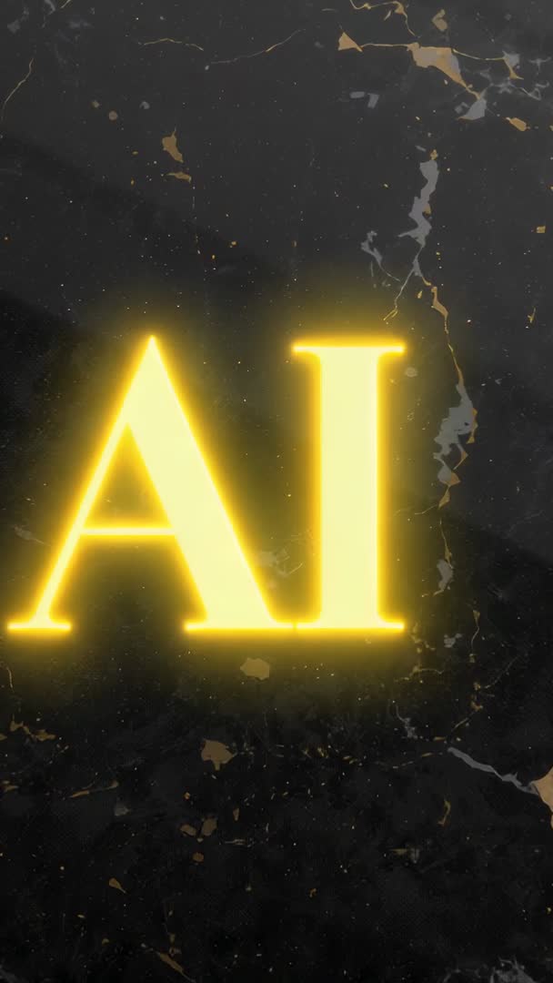 Golden Spark Tracing and Lighting AI Letters on Black Marble Vertical Logo Reveal Video