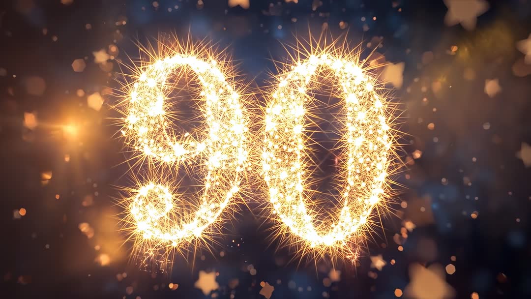 - Golden Sparkler 90 Animation Celebrating 90th Birthday Anniversary Milestone with Bokeh