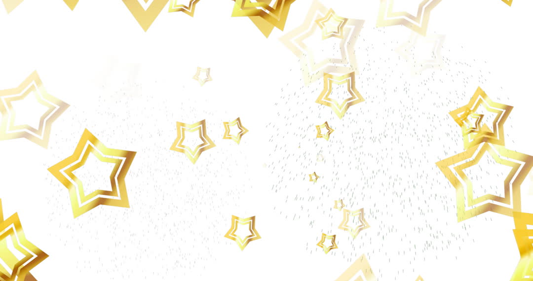 Animation of golden stars falling over a white background. Perfect for festive holiday theming, Christmas events, party invitations, or digital interface design looking for a celebratory theme.