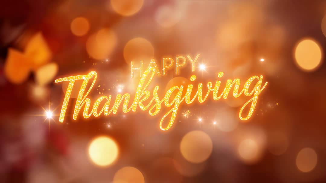 - Golden Thanksgiving Glitter Animation with Shining Happy Thanksgiving Text and Falling Leaves
