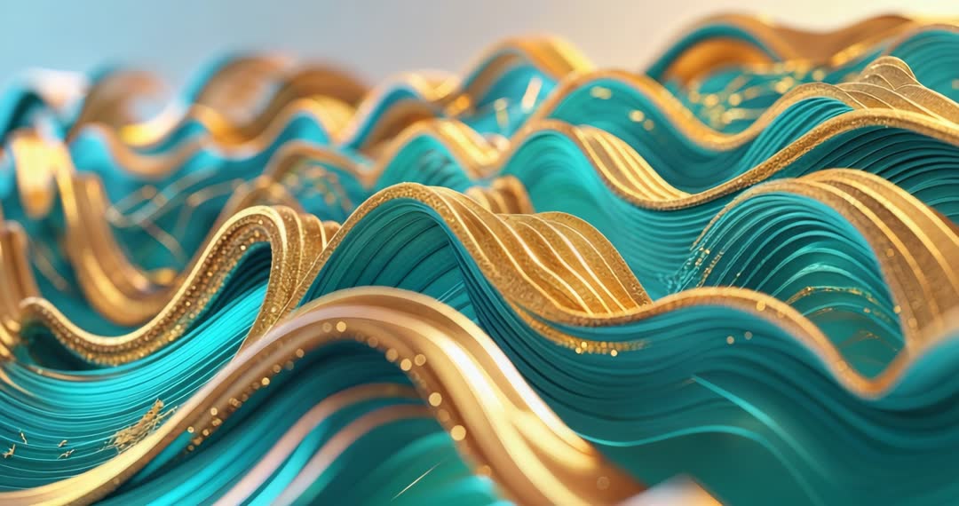 - Graceful Turquoise and Gold Ribbons in Luxurious Flow