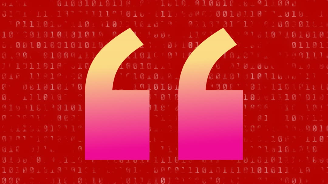 This video shows gradient-colored quotation marks positioned on a red background laden with binary code patterns. Visually appealing for digital content about technology, communication innovation, data management, or computer sciences. Useful for blog posts, website backgrounds, presentations, or infographics emphasizing digital themes.