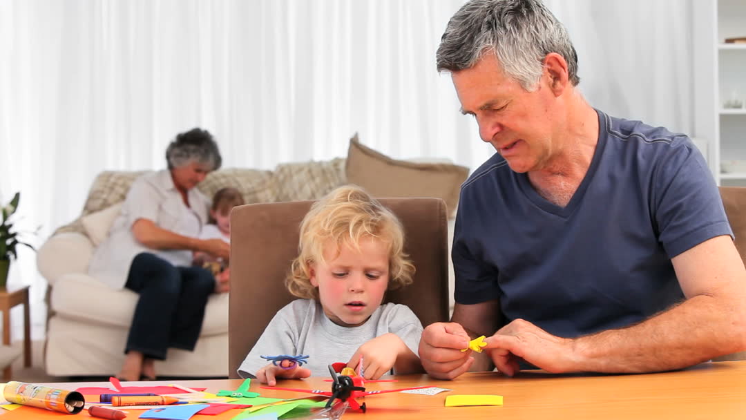 Grandfather Bonding with Grandson During Craft Activities Video