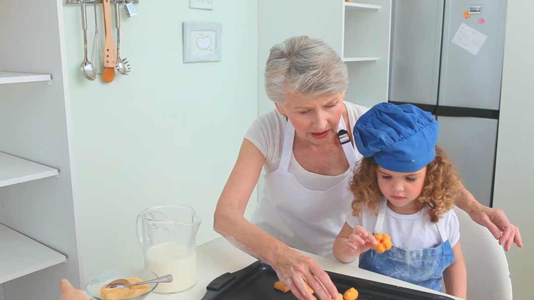 Grandmother and Granddaughter Baking Cookies in Home Kitchen Video