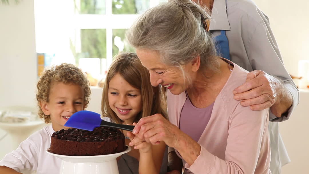 - Grandmother Icing Chocolate Cake with Joyful Grandchildren