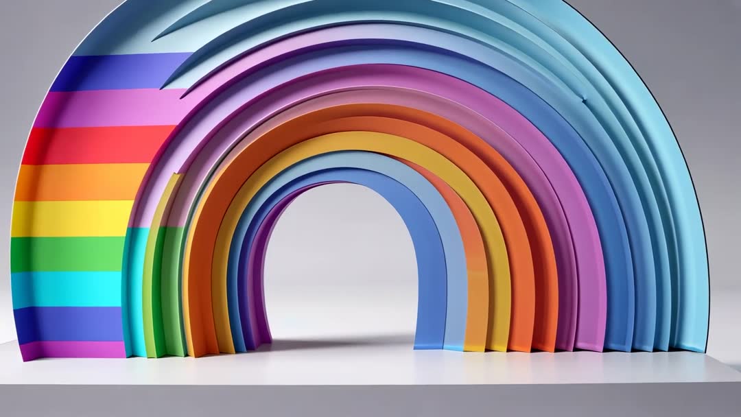 AI Generated Video. Rainbow aligns with pastel hues in graceful sculpture to evoke unity & creativity. Perfect for blog on diversity, or remembering beauty of artistic composition.
