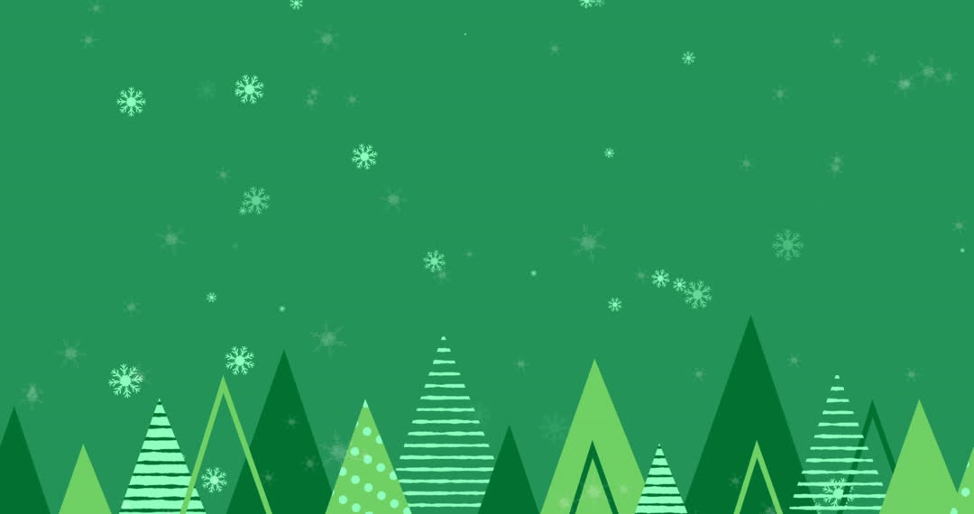 - Green Winter Wonderland with Christmas Trees and Falling Snowflakes