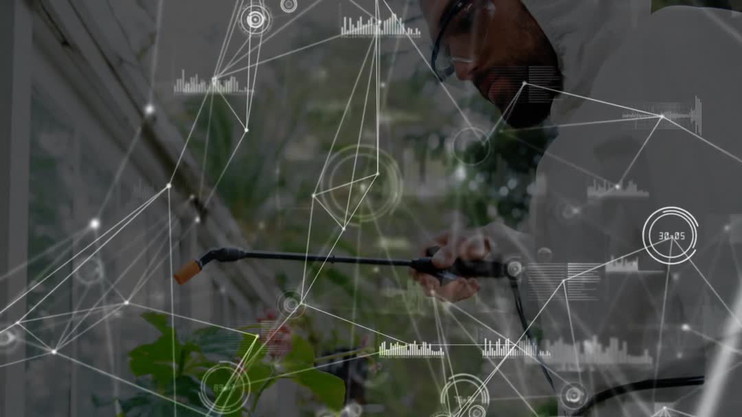 - Greenhouse Technician with Digital Overlay on Plant Care