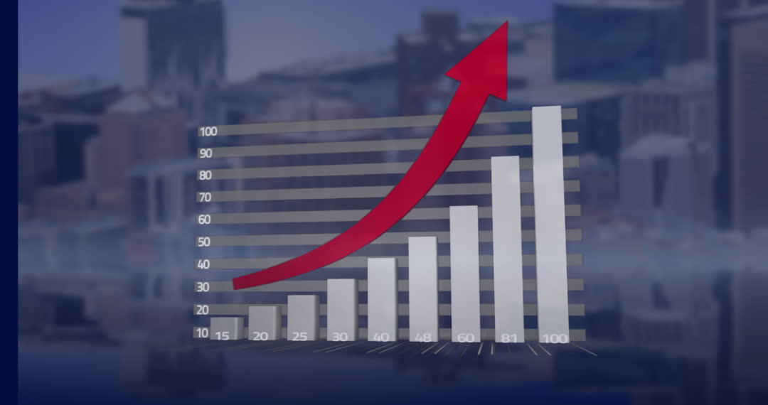Data-driven illustration depicting rising business trends with an overlaid city background, symbolizing economic growth and development. Can be used for presentations, financial reports, or blogs about market insights and urban impact of business ventures.