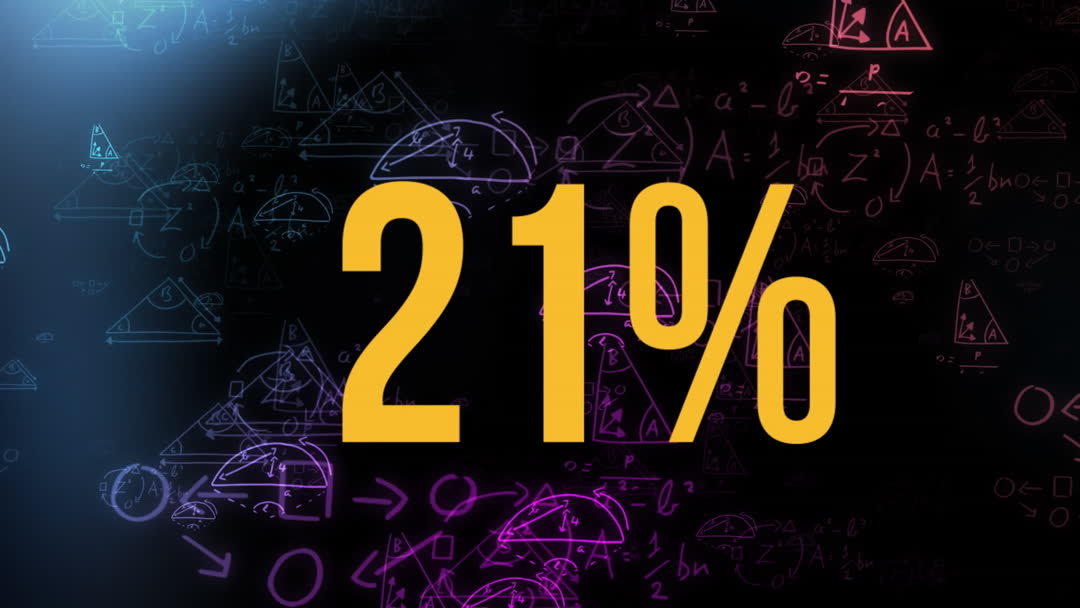 This vibrant animation showcases a growing percentage prominently displayed over a backdrop of mathematical equations and abstract light spots. Ideal for educational content, digital technology interfaces, and presentations focusing on statistics or mathematical analysis, offering an engaging visual for conveying numerical data or digital growth.