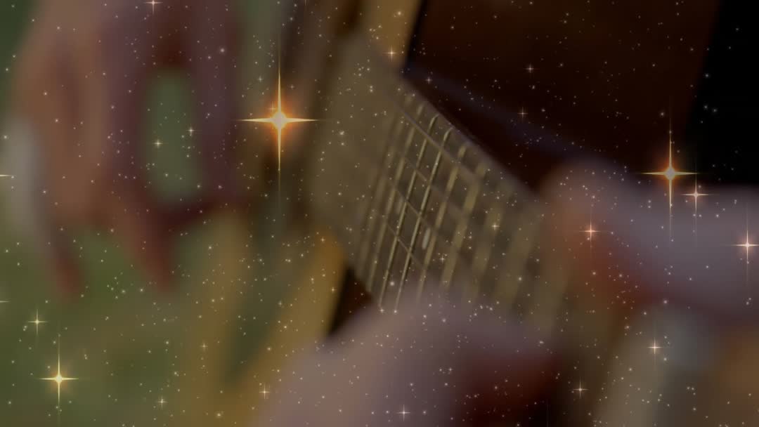 Guitarist Strumming with Starry Overlay for Creative Expression Video