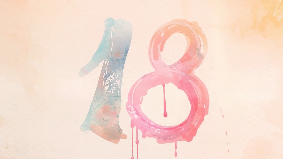 - Handpainted Watercolor Numbers 18 Dripping Animation on Pastel Paper Typography Reveal