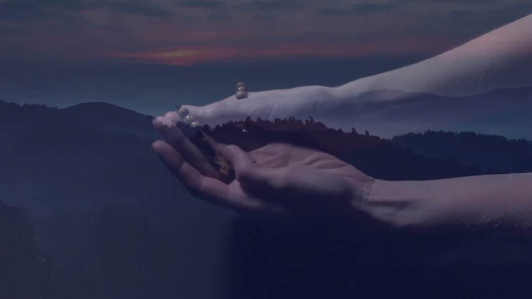 Hands Cradling Soil over Majestic Hills at Sunset Video
