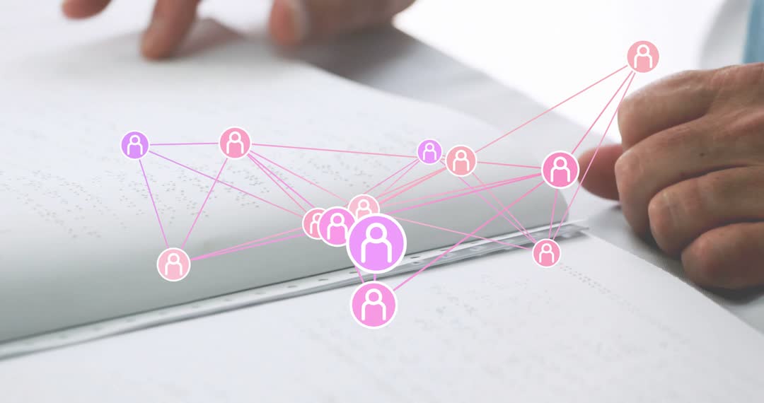 - Hands Lifting Tactile Pages with Digital Network Overlay