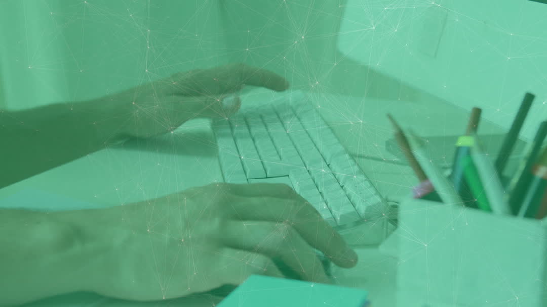 - Hands Typing on Keyboard with Digital Connection Overlay