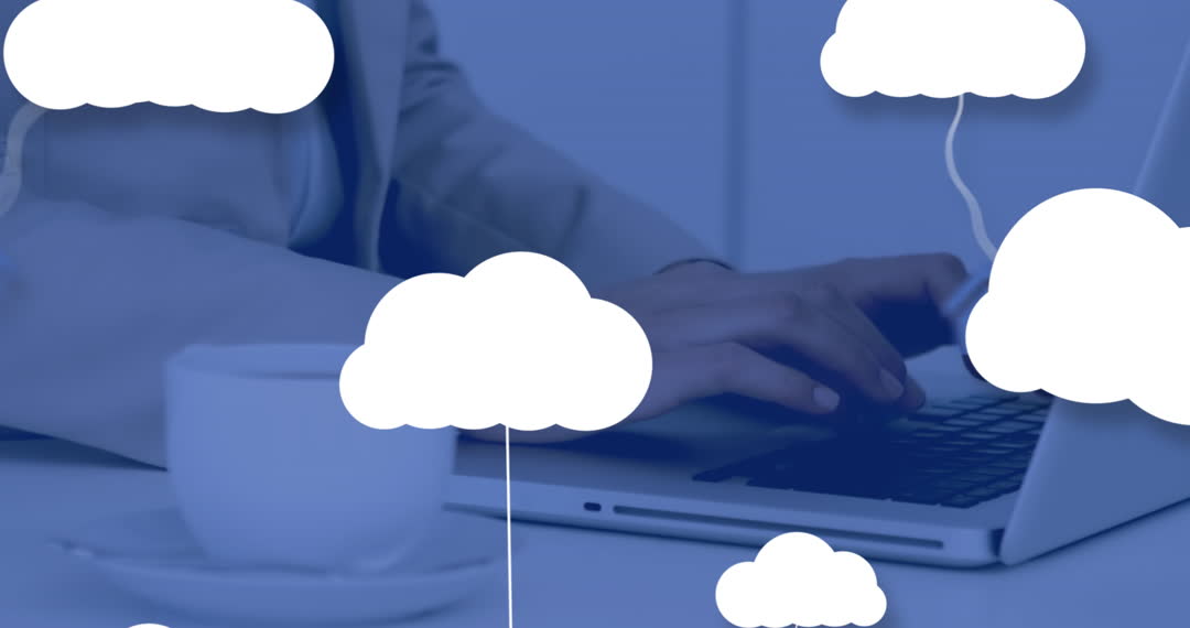Hands Typing on Laptop with Cloud Technology Overlay Video