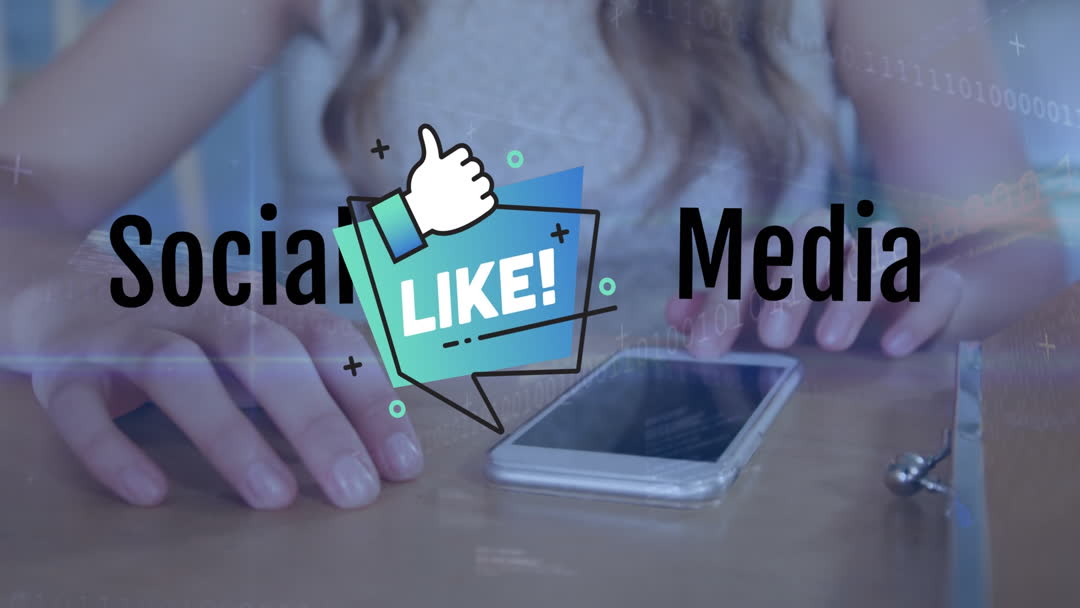 Hands Typing on Phone with Social Media Icons Overlay Video
