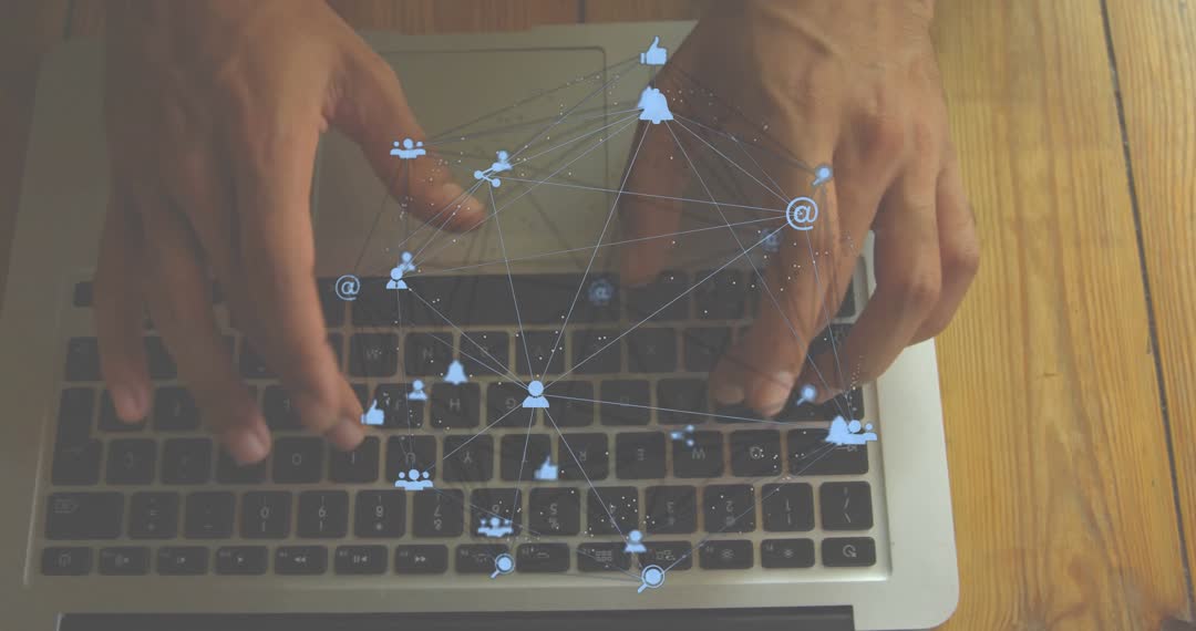 - Hands Typing with Digital Social Network Overlay on Laptop