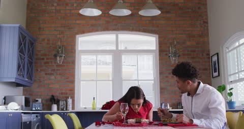 Happy Biracial Couple Enjoying Valentine's Dinner at Home Video