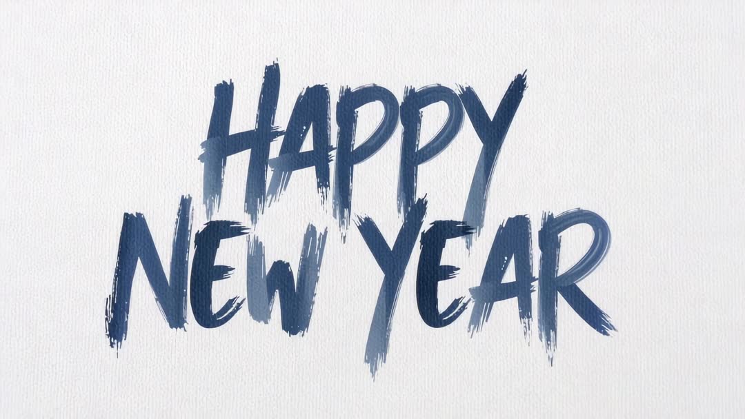AI Generated Image. Video showing cerulean brushstroke lettering 'HAPPY NEW YEAR' revealing on off-white textured canvas. Brush edges sharpening across frames, creating satisfying reveal effect and emphasizing paint stroke texture. Minimal palette highlighting blue tones and paper grain. Working well for social media intros, New Year greetings, broadcast lower thirds, greeting cards, event invitations, website hero banners, and animated e-cards. Designers using clip for looping as seamless background, overlaying branding or countdown, and pairing with confetti or subtle particle animation. Delivering high-resolution frames suitable for print and video, offering options for color grading and transparent background extraction. Ideal for marketing campaigns, party promotions, seasonal newsletters, and digital signage.