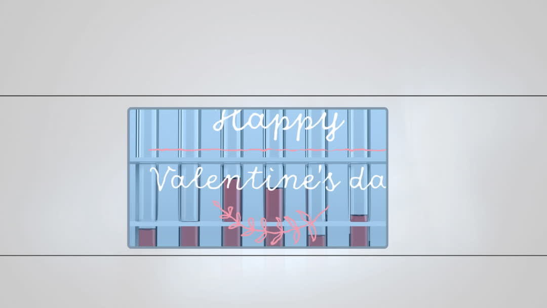 Digital animation featuring creative Valentine's Day message with visual theme of test tubes and a lab environment. Suitable for use in healthcare promotions, medical and pharmaceutical social media posts, or e-cards celebrating both science and love. Ideal for conveying appreciation and seasonal greetings in educational technology settings.