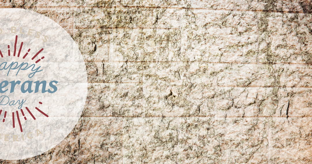 Digital animation features the words ‘Happy Veterans Day’ in a decorative circle set against a rustic stone wall. Perfect for patriotic-themed designs, event promotions, or holiday messages celebrating veterans and military service.