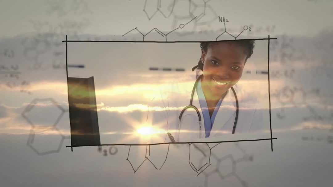 Image depicts a healthcare professional in a lab analyzing data on a monitor surrounded by animated medical diagrams. The video is ideal for content related to medical research, scientific innovation, or technology in healthcare, emphasizing the integration of modern tools in professional wellness and analytics.