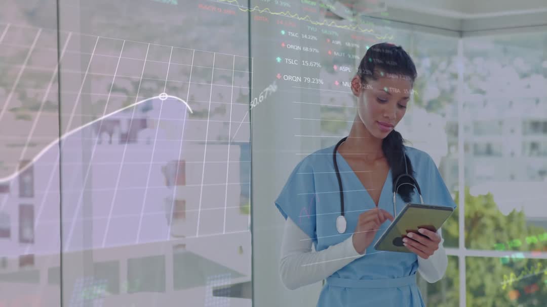 Healthcare Professional Using Tablet with Holographic Charts Video