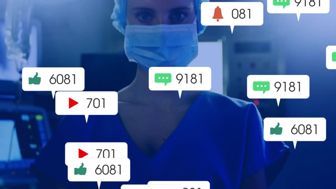 Healthcare Worker Receiving Multiple Social Media Alerts in Surgical Room Video