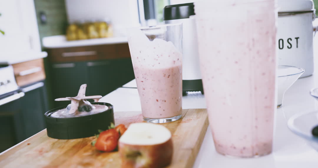 - Healthy Fruit Smoothie Preparation in Modern Kitchen