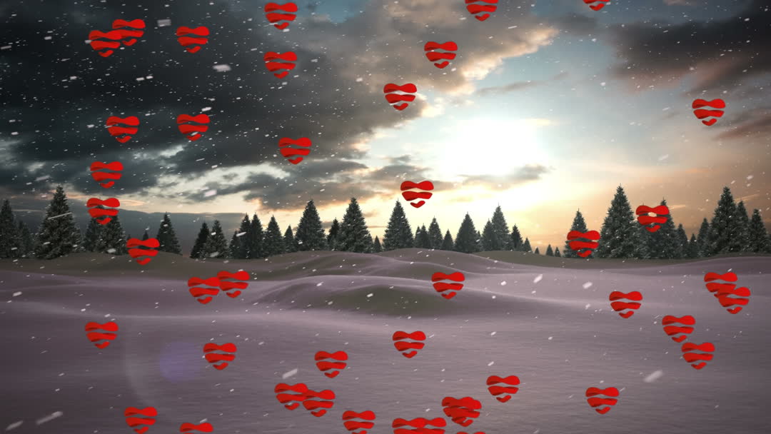 - Hearts and Snowfall in Magical Winter Wonderland Scene
