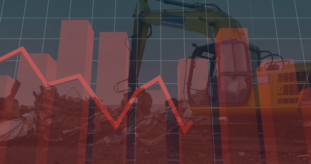 - Heavy Machinery with Decreasing Financial Data Chart Overlay