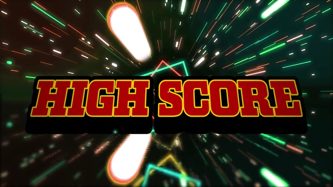 Vibrant animation featuring 'High Score' text with explosive light streaks and geometric shapes in motion, ideal for illustrating video game victories, dynamic achievements, or futuristic digital themes. Perfect for use in visual media, advertisements, or presentations related to gaming and technology.