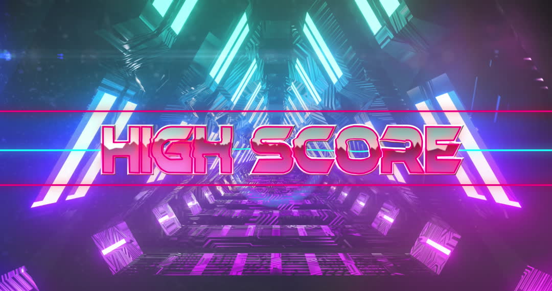 This animation features bold high score text displayed against a vibrant and immersive neon tunnel. The combination of retro styling with futuristic elements make this suitable for a variety of uses in tech and gaming contexts. Ideal for digital media projects, video game video assets, promotional and marketing materials or as part of a user interface in apps or games.