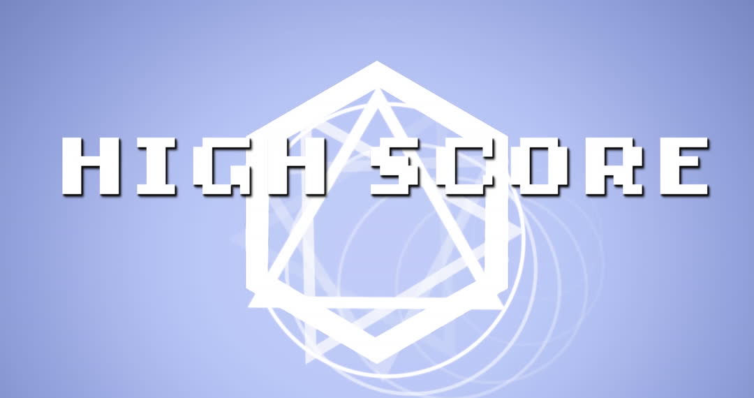 Illustration showing high score text with a modern geometric design overlay holds appeal for gaming and tech industries. The animations and data visualization lend themselves to video game promotions, tech videos, and educational content about digital data processing techniques. Background color and shapes present innovative futuristic aesthetics.