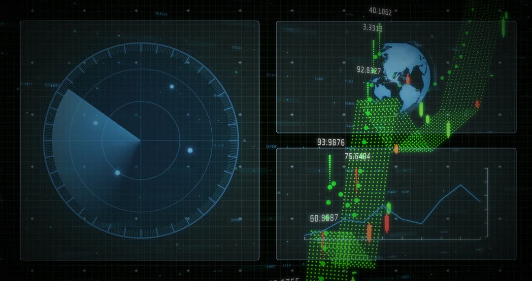 - High-Tech Data Analytics Interface Display with Radar Rotation