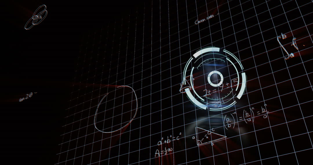 Animation featuring a digital grid interface with circular graphics and equations suggests themes of data processing and cybersecurity. Ideal for videos on modern technology, software development, or presentations on recent advancements in digital communication. This visual encapsulates high-tech concepts making it relevant for educational materials or tech company advertisements.