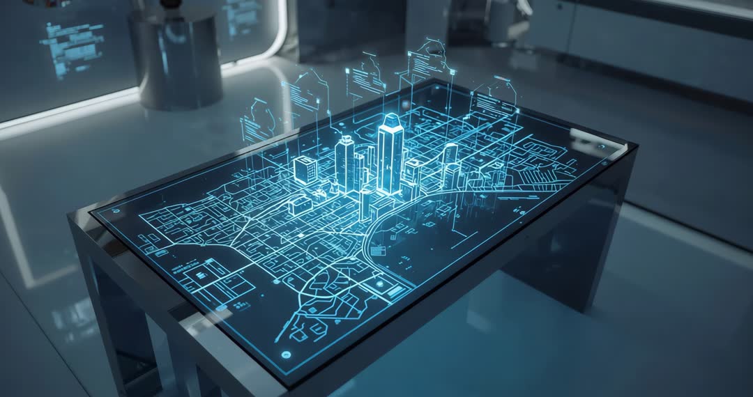 - Holographic City Map Projection in Futuristic Lab Scene