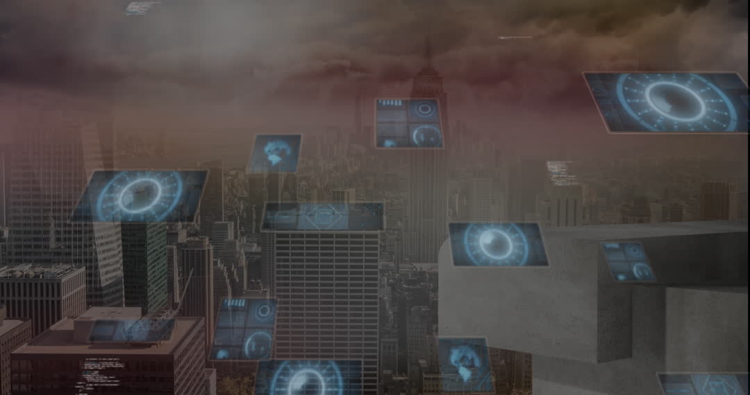 Holographic Data Touchscreens Floating Above Cityscape Video