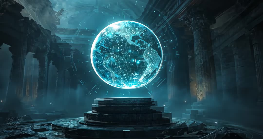 - Holographic Earth Globe Rotating in Ancient Ruined Hall