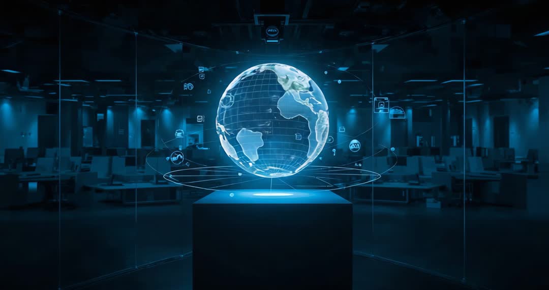 - Holographic Globe in Control Room Reflecting Extraterrestrial Innovations