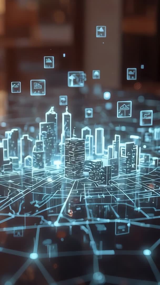 - Holographic Smart City Grid with Floating Data Icons in Vertical Futuristic Video