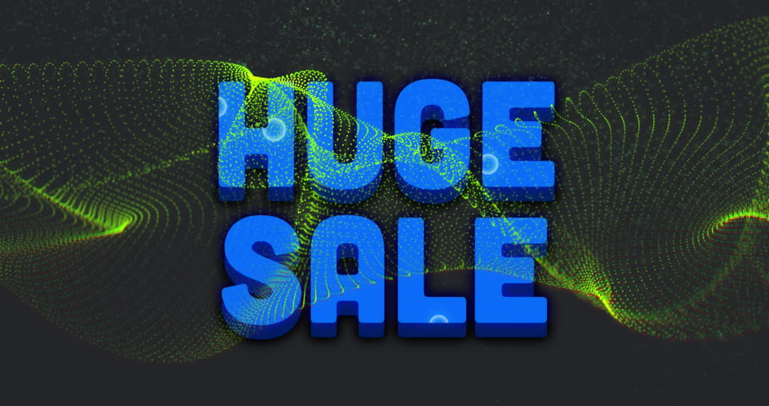 Animated huge sale text combined with wavy dots creating a futuristic vibe, suitable for advertisements and marketing campaigns. Works well for online banners, sales promotions, or retail-themed presentations highlighting major sales or special offers.