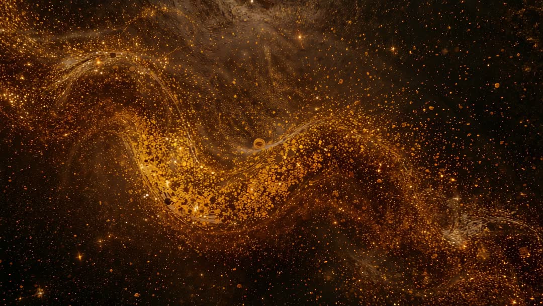 Hypnotic Golden Particle Wave in Cosmic Void Video