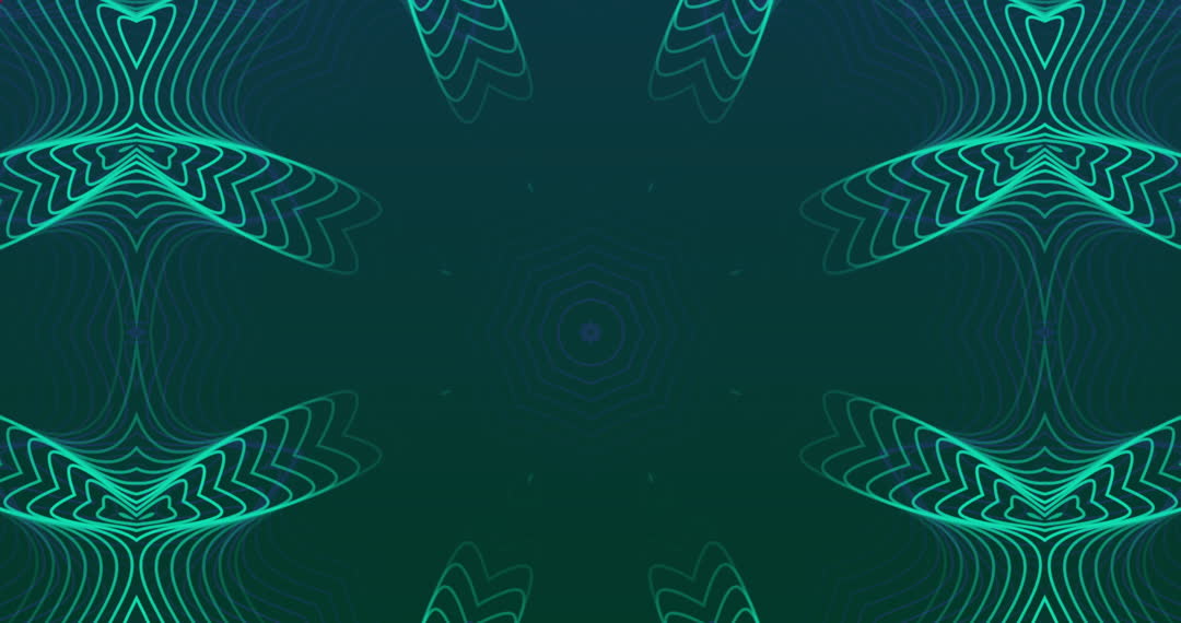 Digitally generated animation features mesmerizing, glowing, abstract kaleidoscope shapes moving hypnotically against a dark background. The red outlined forms stand out vividly on a green backdrop, creating a striking visual contrast suitable for digital art projects, backgrounds in music videos, or media presentations. An ideal choice for events focusing on technology, psychedelia, or digital artistry.