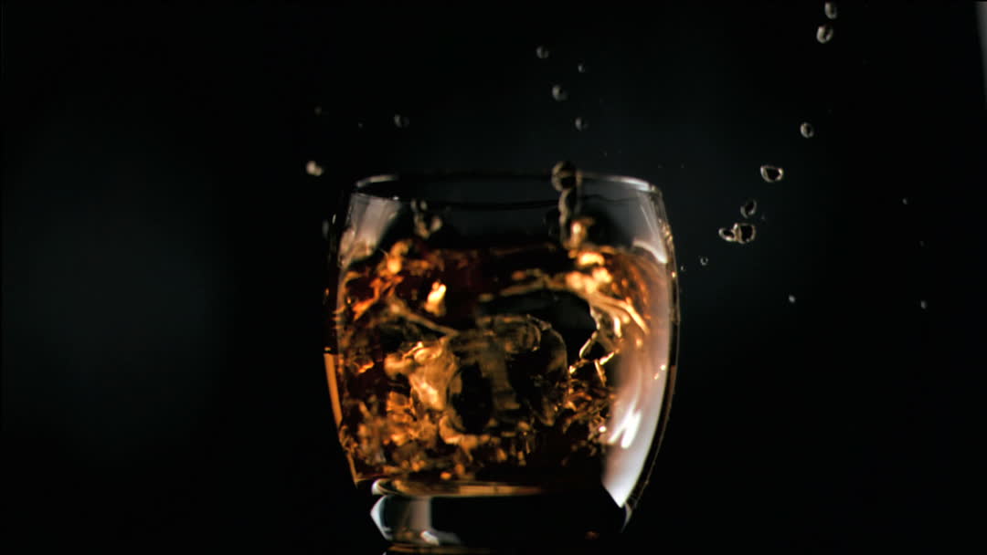 - Ice Cube Creates Splash in Whiskey Glass in Slow Motion
