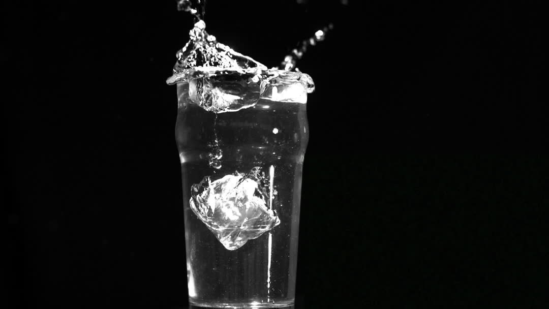 Ice Cube Drops into Glass of Water in Dramatic Slow Motion Video