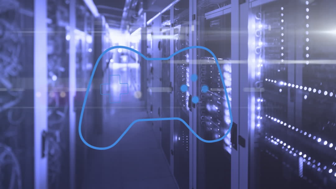 Iconic Game Controller Overlays Digital Data Servers Scene Video