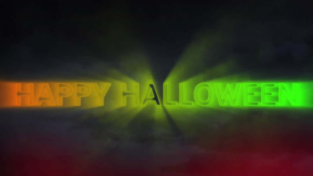 The vibrant illuminated text 'Happy Halloween' projects a festive and captivating message against a dark, abstract backdrop. The glowing colors create a spooky atmosphere ideal for seasonal digital content. Perfect for social media posts, holiday greetings, party invitations, and festive decoration ideas based on digital design. Suitable for conveying a celebratory and mysterious theme.
